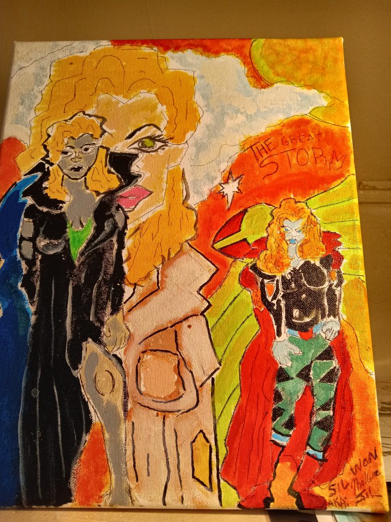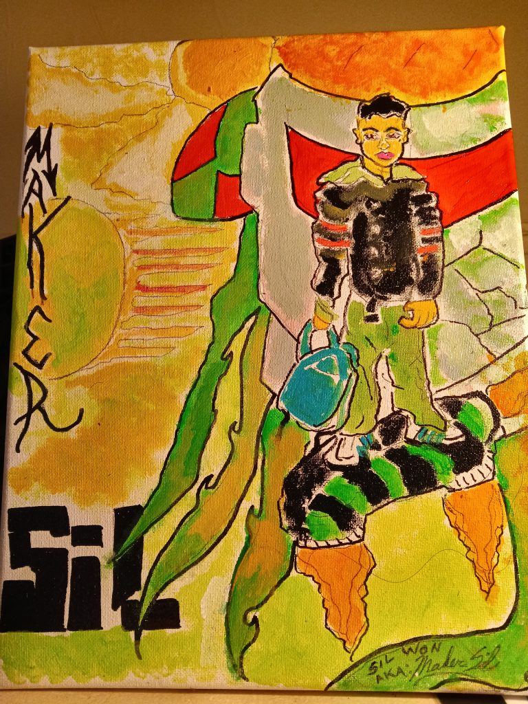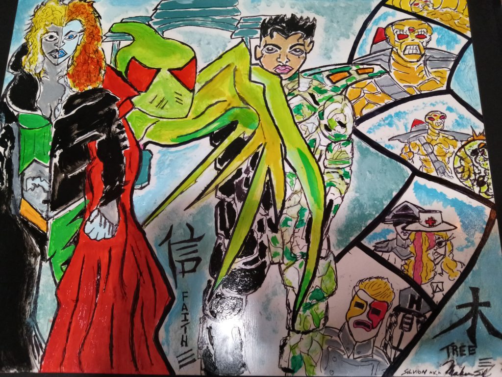 images below depict certain pivotal timepoints in the E.RYU.SPHERE timelines of realm one and two/ the Gift of the Phoenix the painting by Sil J Won aka Maker Sil aka Norman Judah/IN the original audio rough draft a spoken word story by Sil Won based off early childhood stuff with new elements I wrote, Ataree Seth 1 was a agent in a suit /that armor, was the name of the original suite and a past character ,Now I re worked the stories to all match a new timeline still based off the origins story. The immediate change Jaydel replaced leslie not only that maker sil will start out in the black and winter fatigue eryu suite in chronicle 1, dawning the phoenix suite in chronicle 2